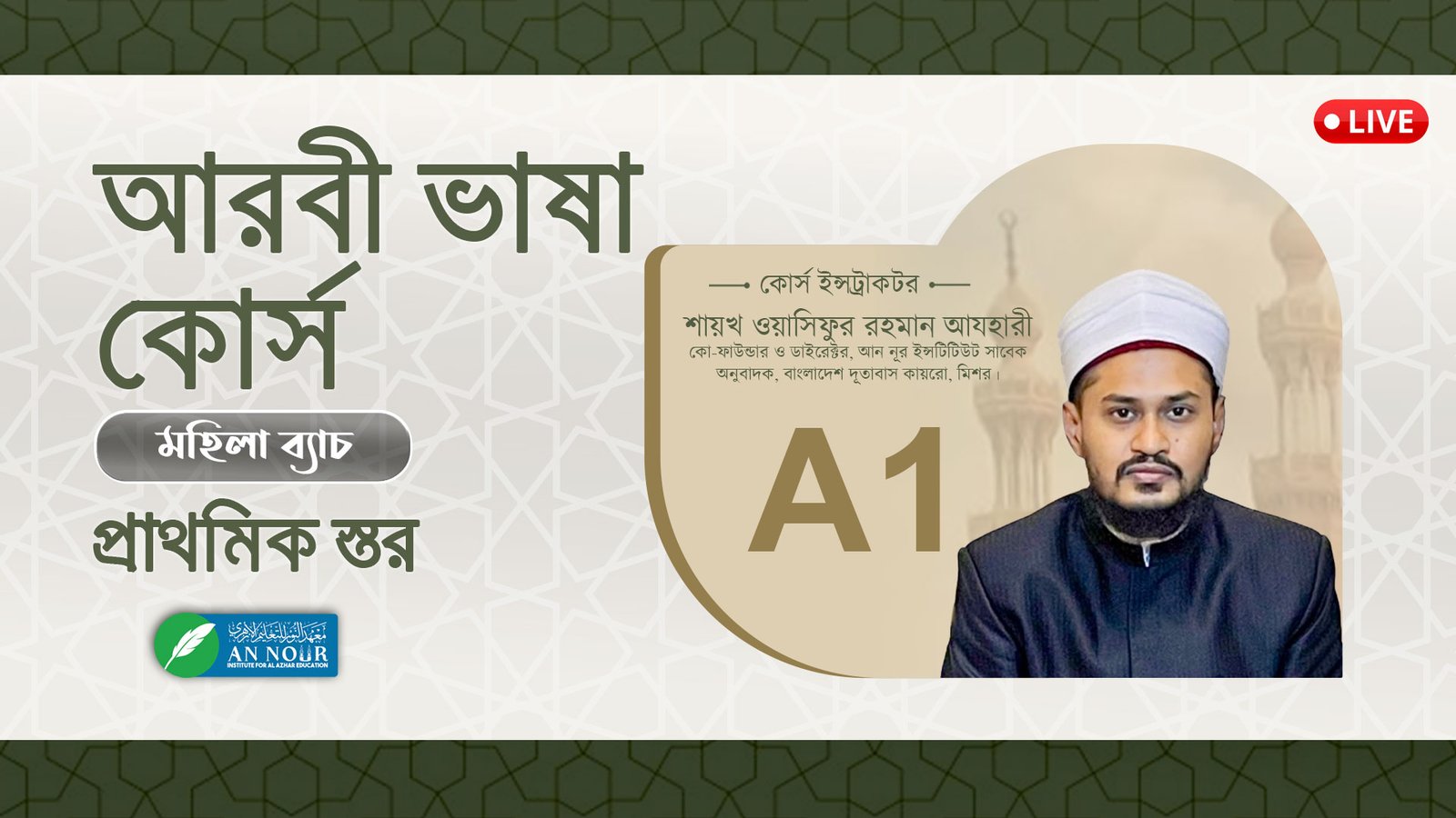 ইসলামিক স্টাডিসের বিভিন্ন শাখায় শিক্ষানবিশ থেকে উচ্চতর স্তর পর্যন্ত গভীর জ্ঞানার্জনে আগ্রহী শিক্ষার্থীদের জন্য আন-নুর ইন্সটিটিউটে বিশ্বের বিভিন্ন দেশের বিশেষজ্ঞ স্কলার ও মাশায়িখদের মাধ্যমে প্রি-রেকর্ডেড এবং লাইভ উভয় পদ্ধতিতে কোর্স পরিচালিত হয়। আমাদের চলমান সকল লাইভ ও রেকর্ডেড কোর্স দেখতে নিচের বাটনে ক্লিক করুন।